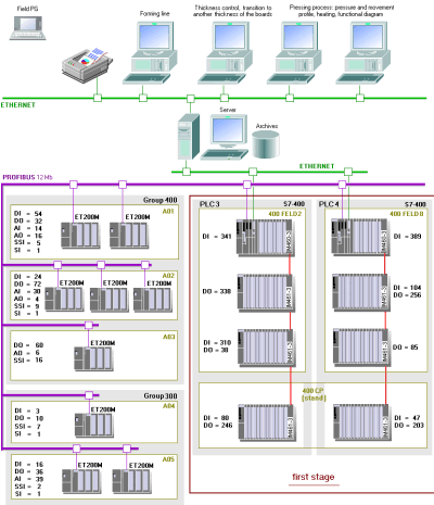 line at flakeboard production plant (Krono-Osmoloda enterprise).