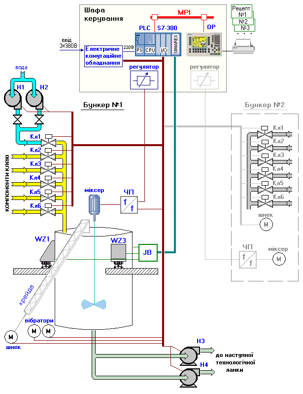 (бункер №1), виконавчими механізмами якої є: