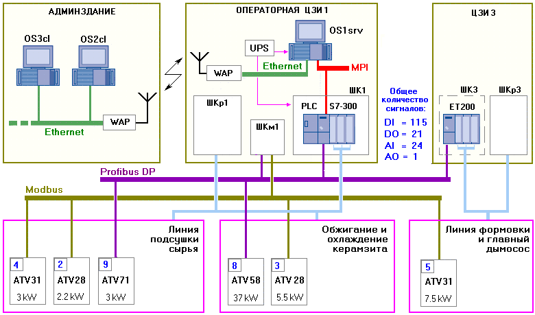Разработанная автоматизированная система управления - это комплексная автоматизированная система, которая построена на базе программируемого логического контроллера SIMATIC S7-300 фирмы SIEMENS, модулей децентрализированной периферии ET-200 и операторской станции, которые в целом выполняют функции измерения, контроля, автоматического и дистанционного ручного управления, визуализации и архивирования событий и параметров технологического процесса.